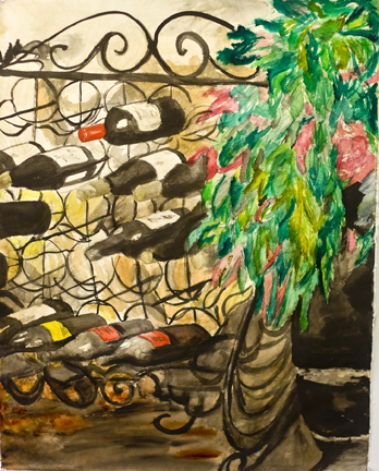 "Wine Rack" watercolor painting 24x30